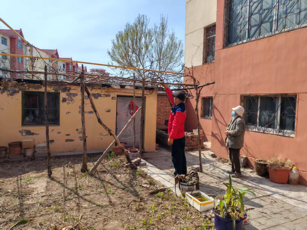 近日,受强对流天气影响,小区遭遇大风侵袭,胜利玉山物业幸福事业部文明一区12号楼1单元一户90岁高龄老人院中的葡萄架被狂风损毁,不仅影响正常使用,更存在安全隐患。由于老人的子女都在外地工作,老人心里急得不行,在4月7日这一天,颤颤巍巍走到物业大厅,向物业工作人员求助。